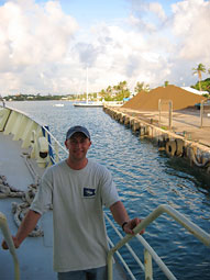 July 18, 2005 We set sail at 07:00 from St. Charles Harbor in Bermuda. We have about a 12-hour steam to the edge of the eddy where the crews' research will begin. To find the eddy's center we will be using two measurement techniques. The first is an Acoustic Doppler Current Profiler or ADCP. What the ADCP does is send a pulse down and detects the different refraction at various depths and times. This allows us to determine which way the current is flowing and allows us to determine the edges of the eddy and ultimately determine the center of the eddy.