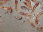 August 26, 2006 Today we sampled at the deepest site of the whole cruise, a place called Georges Basin in the Gulf of Maine. This site was 360 meters deep and since it came shortly after a whole bunch of sites on Georges Bank that were among the most shallow places sampled (20-50 meters deep) it provided a very concrete illustration of the changing topography of the ocean floor. There were four other very deep sites to be sampled in the Gulf of Maine. These sites were fixed, meaning that they were sampled each time this cruise goes out, as opposed to all the other sites that were selected at random for each cruise. Right at the bottom of these five deep sites is where the very cold, dense water from the Labrador Current, flowing south from the Artic, tends to accumulate. These sites are of particular interest to scientists as they provide data that helps in understanding the flow pattern of this cold water current. When one of the bongo tows came back to the surface today it had a stand of Sargassum seaweed caught up in the cable. This is a floating type of seaweed that occurs in great quantity in the Sargasso Sea out in the middle of the Atlantic Ocean. There have been pieces of it floating about throughout the cruise. However this particular piece of Sargassum was special because tangled up in it was a weird and wonderful creature. It was roughly circular, flat except for a reddish brown, spherical area in the center, and mostly made of a stiff gelatinous material. At about 20 cm in diameter it was by far and away the largest marine organism we had seen far. Karla immediately recognized it as a pteropod, or swimming mollusk. She had seen them alive in the ocean as they swim slowly and gracefully by flapping their gelatinous wings. Earlier she had pointed out another group of gelatinous creatures floating in the water just off the side of the ship. These ribbon-like waifs were siphonophores. Each one was not a single organism but a colony of specialized individuals strung together in a row.