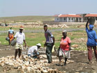 Enrique meets us to take us out to the site. He is the head contractor who has hired eight laborers to help out at the site. He is driving an old Daihatsu and it is empty of gas. We head into town to get another truck and fill up. Prof Hedlin drives though he is a bit big for the truck seat. He has carried, all the way from San Diego, an expensive GPS system capable of measuring distances down to one centimeter. The site is about 4 km away over a road made of basalt type rock quarried into cobblestones. Each stone is laid by hand. My eyes immediately set upon the road construction. The locals are man-hauling the rock in baskets over their heads, very much like I have only seen in pictures.