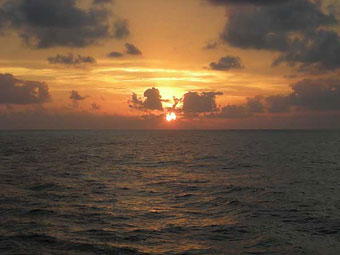 November 5, 2007 The day began at 0603 as the sun was rising. I am assigned to work with the CTD cast which measures conductivity, temperature, and density for the next few days. It is a large, cylindrical piece of equipment with 12 bottles that collect water samples at a given depth dictated by the scientists. The process begins by using the A-frame (aka a gantry or pulley system) to deploy the CTD into the water. It is lowered to 1000 m and begins taking water samples. There is an oxygen, temperature, and conductivity sensor which records information to a computer program in the dry lab (aka computer lab). As the team raises the CTD, they begin to "fire" the bottles. This closes one of the bottles at a given depth through a triggering device on the equipment from the surface. The team slowly raises the CTD and takes 12 water samples, ending at the surface. Then it is raised back onboard where the team can collect a sample from each bottle. As I was assisting, it was interesting to feel the large temperature difference between the surface water bottle (approx. 28 degrees C) and the 1000 m sample bottle (approx. 4 degrees C). I also assisted at the chlorophyll station where we took the sea surface temperature and a water sample from the surface to filter to make a chlorophyll count. This is done by collecting 265 ml of surface water then pouring it through a filter where the chlorophyll is trapped. Then the filter with chlorophyll on it is placed into 10ml of acetone. This is to separate out the various chlorophyll types for later study. More to come on physical oceanography soon! So, in between the CTD work, I was on the fly bridge (uppermost deck) with the marine mammal and bird observers. I will be assigned to working with them later in the cruise but I was observing the observers as they worked. What I saw while up on the fly bridge was amazing! One of the scientists spotted a Blue Whale!! It was the coolest thing for me to witness. It was the first sighting of the entire 4 months to date and I just happened to be there! It came to the surface 3 times where we could see the "blow", pectoral fins and the dorsal fin as it went back under the water. It was estimated to be approximately 25-30 m long (not more than 90 ft). I also saw my first school of spotted dolphins. They were leaping out of the air and they moved quite quickly. They looked smaller than the bottlenose dolphin to me but they were far away. As the sun set, the mammal crew was done and dipnetting for fish is about to begin soon. I will leave you with the sunset today- absolutely another beautiful sight! ![]() Sunset Marine Science Questions: 1. What is the thermocline? 2. Why is it important to the plants and animals? |