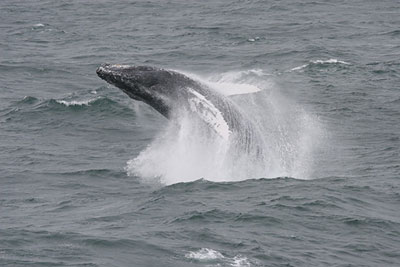 August 21, 2008 We arrived in Newport, Oregon at 3:30pm on Tuesday afternoon. We had wrapped up the research end of things around noon with an exciting finale. I was literally in the middle of lunch when over the intercom came the announcement that there was a whale repeatedly breaching off our starboard bow. I probably looked like a fool but I ditched my dishes in the galley, swung by room for my video camera and raced outside. As I walked to the bow, a 45-foot humpback whale was breaching about 250 meters off to the right-hand side of the ship. I have seen many whales on this trip but none breaching as this one was! It would take two to three breaths at the surface, disappear for a minute, and then come leaping out of the water, creating a huge splash on its way back down. It was the most I have seen of this species to date. Everyone was out, watching it breach for about 15 minutes. Plenty of time for great pictures and some video. I had known that barnacles would attach themselves to whales but what I learned form this animal was that some of the barnacles actually hung off the animal, not just single animals as I had first thought. Always something to learn out here!