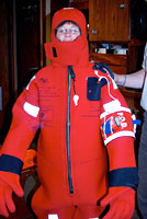 My next assignment was to attend a safety briefing lead by first mate, Dan Erickson. He took us on a tour of the ship pointing out safety equipment such as life vests, survival suits, life boats, and life rings. He discussed everything from personnel and meal times to life boats and man-over-board procedures. He had us practice putting on survival suits and made sure we could do it in less than a minute. I learned that I definitely need a size small or my hands can't reach the gloves! By the time we finished our briefing and medical paperwork, it was 11:30 pm. I made up my berth and unpacked quickly. I was asleep as soon as my head hit the pillow at about midnight.